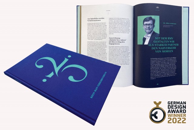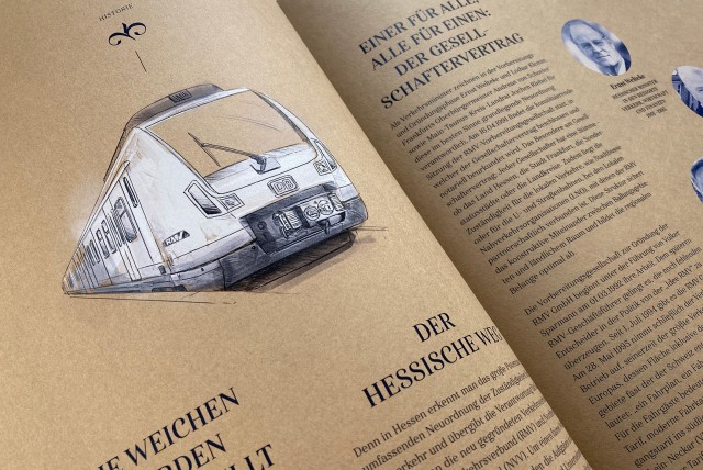 Der Rhein-Main-Verkehrsverbund (RMV) gehört zu den größten Verkehrsverbünden Europas. Im Rahmen des 25 jährigen Firmenjubiläums wurden wir mit der Konzeption und Realisation eines Jubiläumsbuchs beauftragt. Die aufwendig produzierte, 76 Seiten starke Publikation erzählt die Geschichte des Unternehmens, lässt Wegbegleiter und Fahrgäste zu Wort kommen und bietet darüberhinaus übersichtlich aufbereitete aktuelle Kennzahlen.