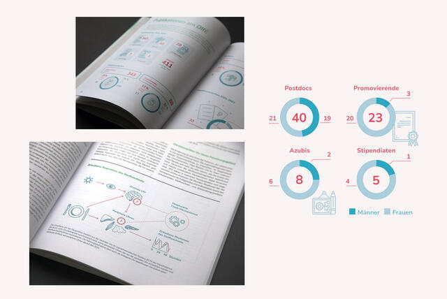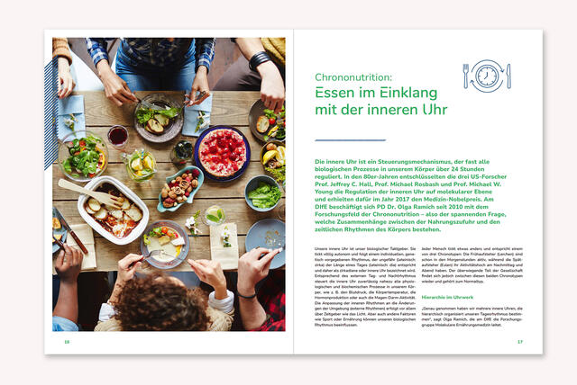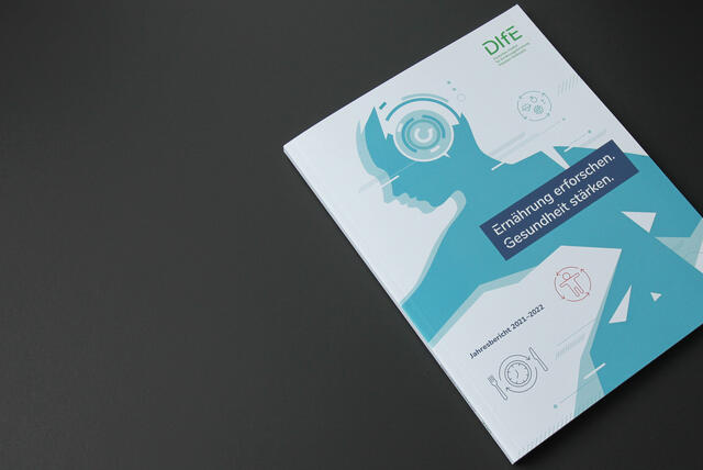 Im Anschluss an das Jubiläumsbuch widmeten wir uns der Gestaltung des Jahresberichts 2021 – 2022 des Deutschen Instituts für Ernährungsforschung. Ein besonderer Fokus dieser Publikation liegt auf Ernährung, Gesundheit und Wohlbefinden in Zusammenhang mit der Corona-Pandemie.