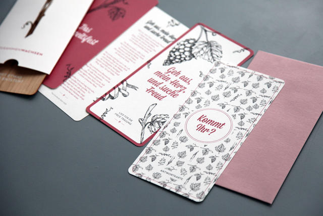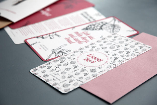 Das aufwendig produzierte, mehrteilige Einladungskonzept erzählt mit viel Liebe zum ästhetischen Detail die Geschichte der Weinveredelung neu und sorgt dank edler Materialien für ein haptisches Erlebnis, das die exklusiv geladenen Gäste auf eine romantische Veranstaltung einstimmt.