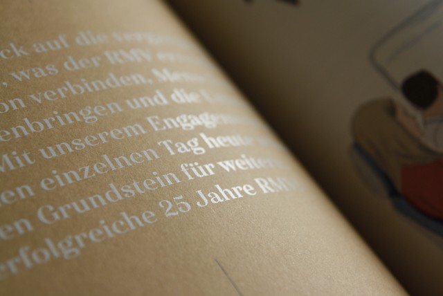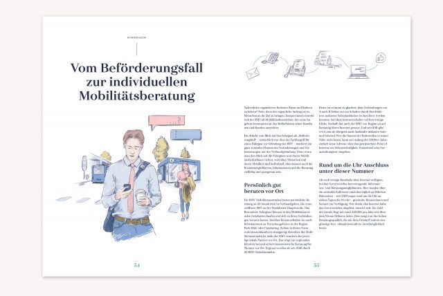Der Rhein-Main-Verkehrsverbund (RMV) gehört zu den größten Verkehrsverbünden Europas. Im Rahmen des 25 jährigen Firmenjubiläums wurden wir mit der Konzeption und Realisation eines Jubiläumsbuchs beauftragt. Die aufwendig produzierte, 76 Seiten starke Publikation erzählt die Geschichte des Unternehmens, lässt Wegbegleiter und Fahrgäste zu Wort kommen und bietet darüberhinaus übersichtlich aufbereitete aktuelle Kennzahlen.