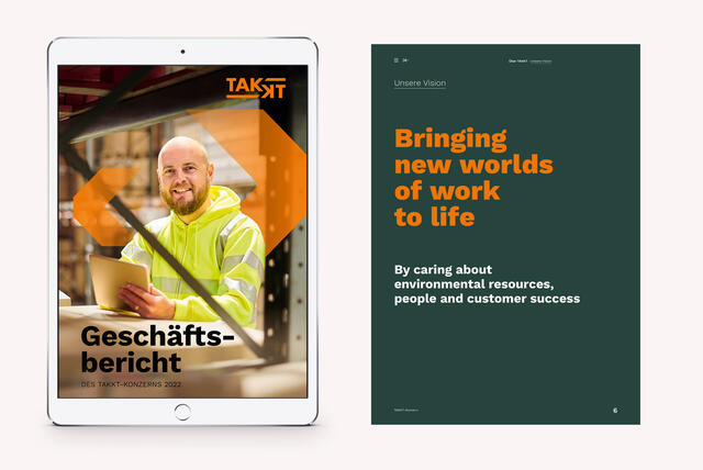 Im Jahr 2022 erhielt die Takkt AG ein Redesign ihrer Corporate Identity. Im Zuge dessen haben wir den gesamten Geschäftsbericht neu konzipiert und gestaltet. Der Bericht wurde als Online-Version veröffentlicht.